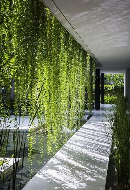 除了直接用爬藤植物裝飾墻面外,你還能通過在墻面上設(shè)置不同高度和形狀的花盆或花架,種植各種花卉和綠植,形成錯落有致的植物景觀。這樣的設(shè)計可以讓墻面變得更加豐富多彩。