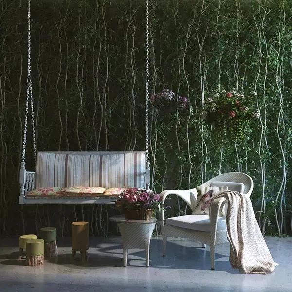 相比前兩個(gè)案例,這個(gè)就屬于局部設(shè)計(jì)了。主要通過(guò)植物墻和盆栽的組合,打造一個(gè)綠色的小花園,配上沙發(fā)茶幾,就是一個(gè)絕佳的休閑角落。這種做法相對(duì)來(lái)說(shuō)還是比較簡(jiǎn)單的。