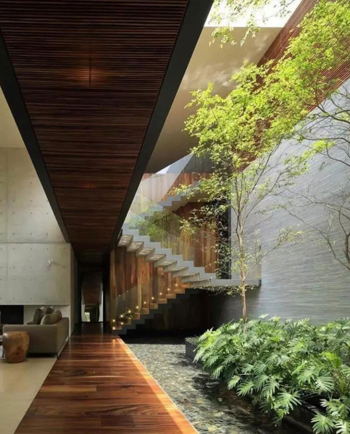 其次,從“自然健康”的角度著眼。下沉式庭院與入戶式花園一樣,能夠帶給人更親近自然的歸屬感,使居者更親近自然,親近陽光,尤其是與室外無縫連接的下沉式庭院,讓人仿佛置身大自然之中,頓生天人合一的浪漫。