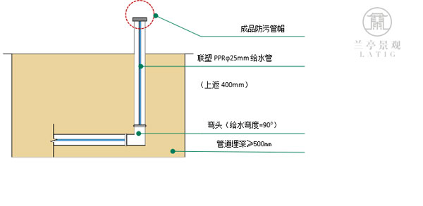 1. 室外給水設(shè)室外總閥,水管掩埋深度低于完成面500mm;