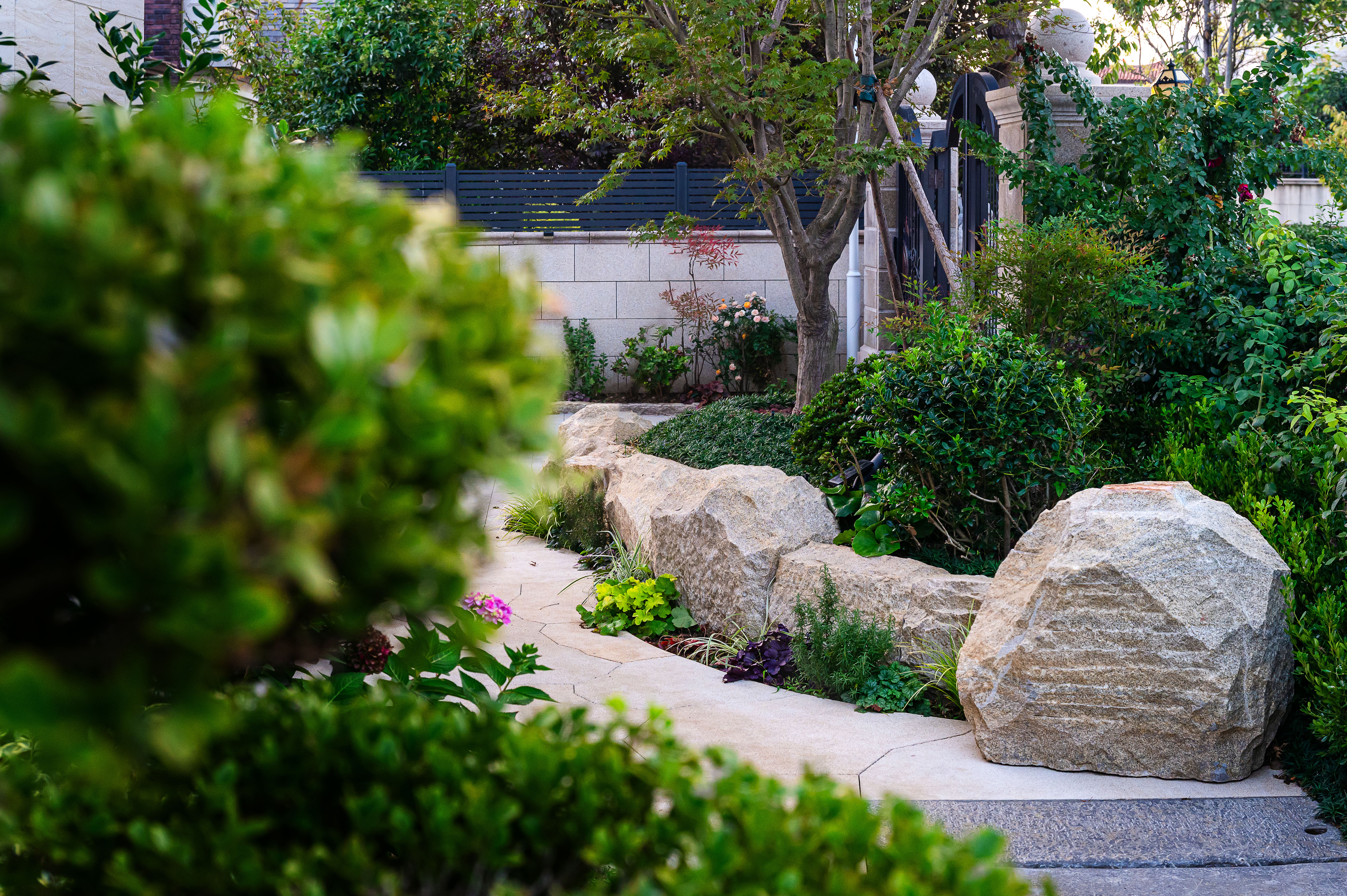 佳木芳草之間,沿著小徑漫步,仿佛成為了這個和諧的自然庭院的一部分,感受曲徑踱步之樂趣。在保留原有林木的基礎(chǔ)上,搭配喬木,灌木,與時花。隨著氣候變幻而綻放,四季芬芳。微風(fēng)吹過,風(fēng)鈴搖動,清脆悅耳,如音樂般美妙動人,讓人陶醉其中,流連忘返。在花園里享受美好的日常。
