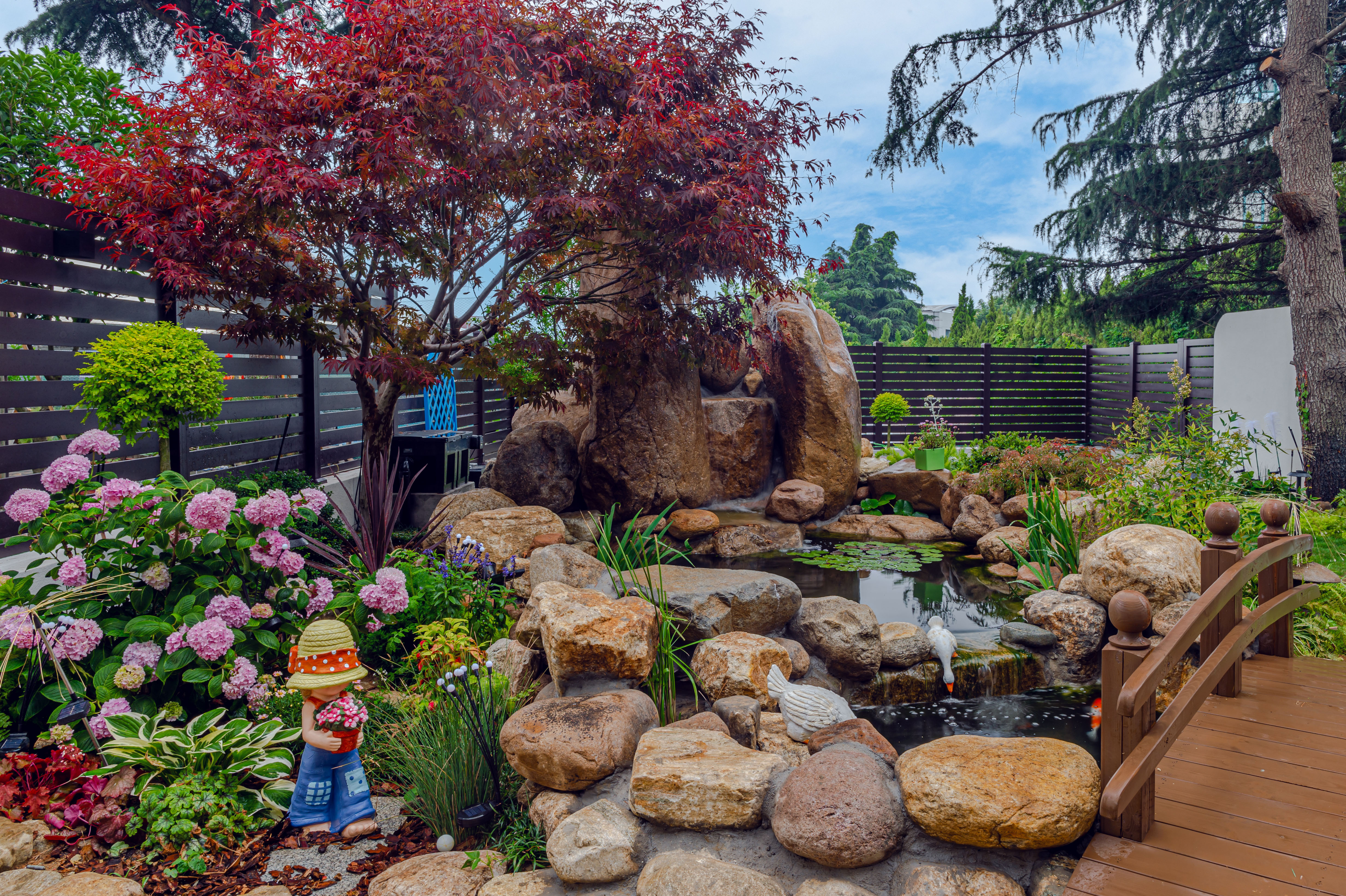 因男業(yè)主是理工科專業(yè),不喜歡過于人工化的產(chǎn)品,不喜歡直線,喜歡自然曲線且柔和的布局,所以我們將花園分為三部分: 休閑平臺、錦鯉魚池及后花園。出戶設計成大區(qū)域的木塑平臺,在午后慵懶的陽光下,享受自然的清新,感受小院的溫馨。
