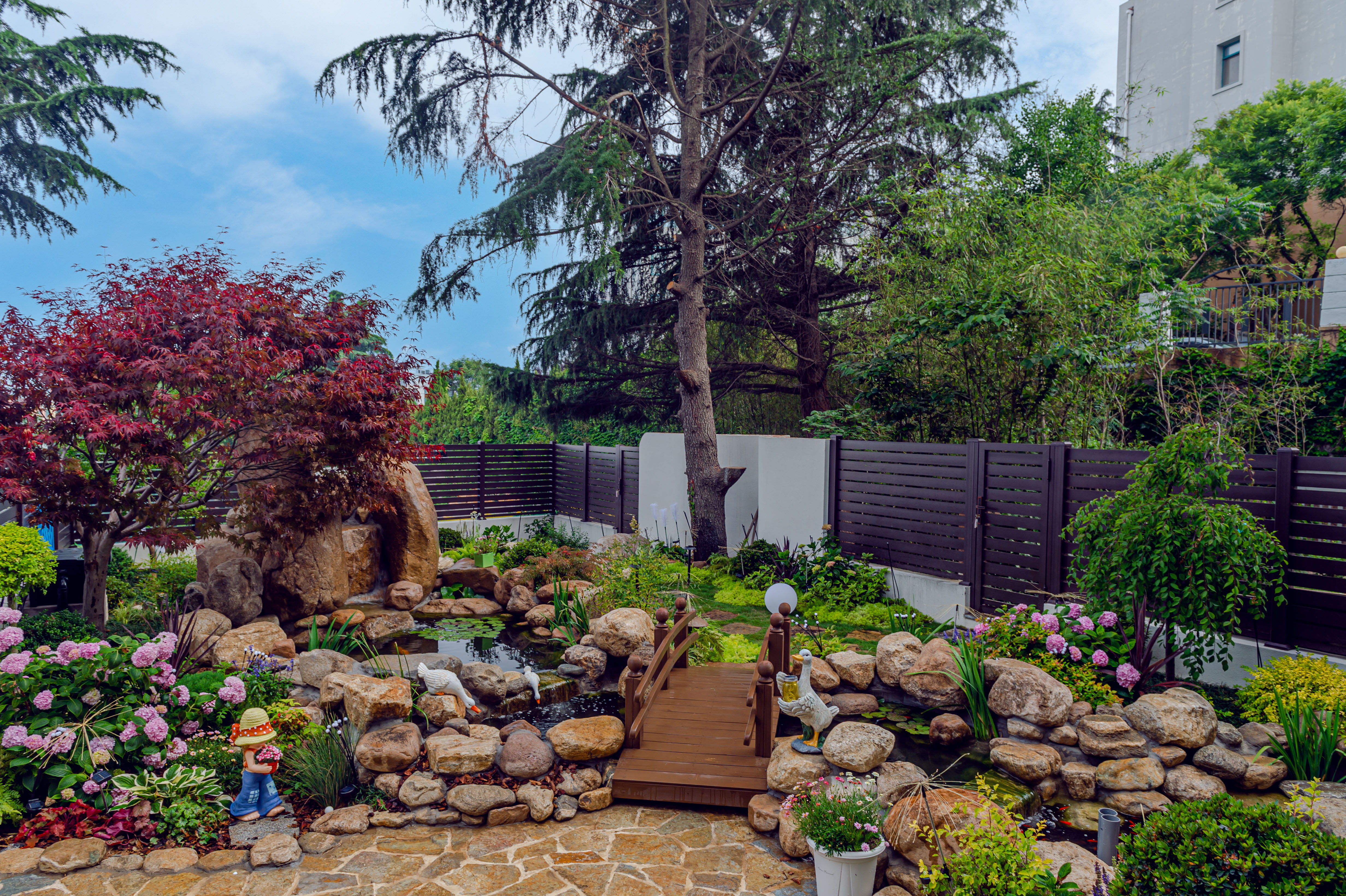 清晨,睜開雙眼,推開窗戶,呼吸著院子的花香,青草味,聽著鳥叫聲,看家中的貓咪與狗狗在草地中快樂地穿梭著。傍晚躺在秋千上看日落和晚霞,感受著院子里溫柔的風。夜晚,花園化身成為神秘的世界,在院子里看繁星點點,沐浴在柔和的燈光中放松身心,在這寧靜的夜里,只聽到潺潺的溪水聲,讓人卸下了一整天的疲憊。