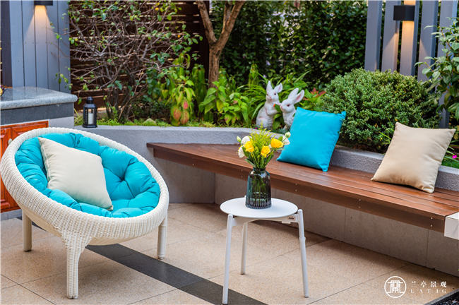 其二,西南角的是全家人的主要活動(dòng)休閑空間,為了最大化的利用空間,此處的坐凳我們設(shè)計(jì)成與花壇結(jié)合的形式,坐凳背后的花壇種植喬灌木和花卉,使整個(gè)休閑區(qū)被綠植半包圍,自然的舒適感油然而生。