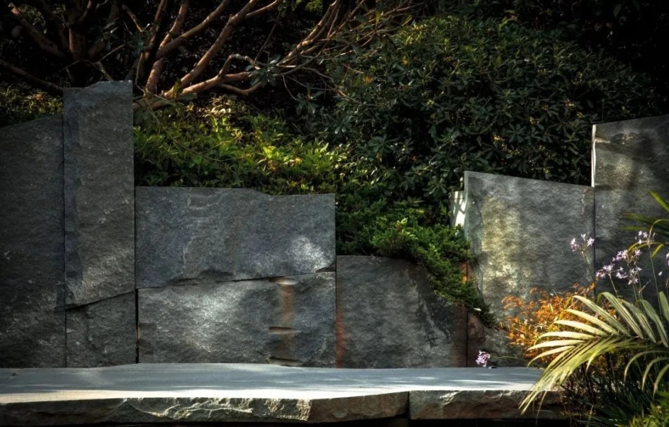 設計師之所以會選擇天然石材,主要因為它的特點是厚重而穩(wěn)定,而自然斷裂面石材打破了天然石材原有的穩(wěn)定性和連續(xù)性,展現(xiàn)了一種殘缺之美,瞬間就將場景鋪墊成為電影畫面。猶如豐碑一般,給人一種崇高感和滄桑感。這種石材斷裂面帶給人們的視覺沖擊是平板石材無法比擬的。