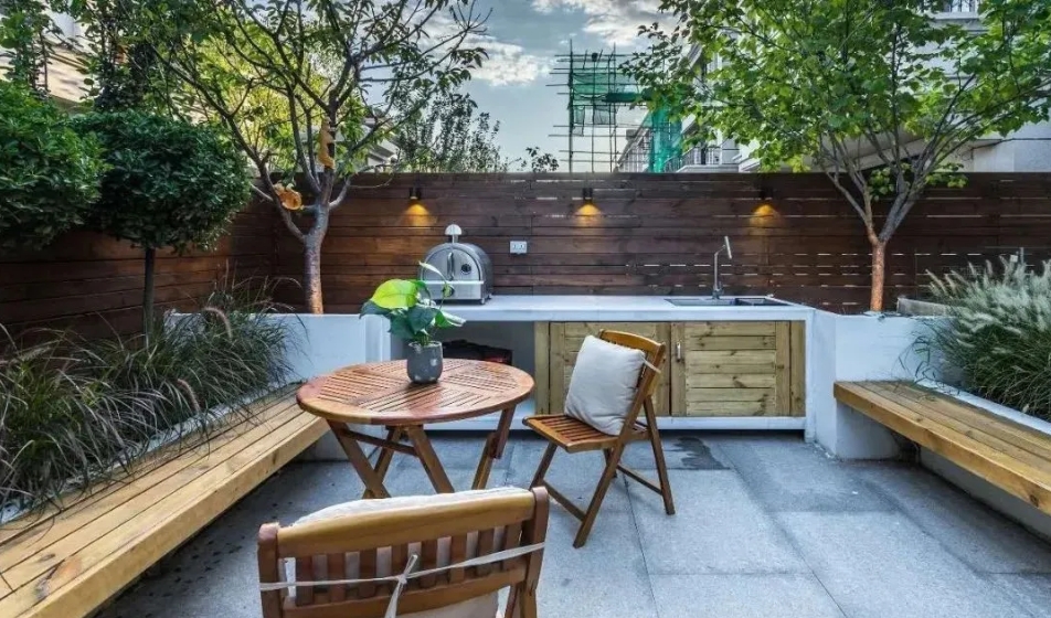 同時(shí),為了節(jié)省空間,也不應(yīng)設(shè)置一個(gè)10人座這樣大的桌子,而可采取內(nèi)嵌式、可伸展的桌椅。類(lèi)似,比起以后可能長(zhǎng)到三十多米高的大樹(shù),不妨選用一些本土小型的植物和花草,讓后院有一個(gè)開(kāi)闊的視野。