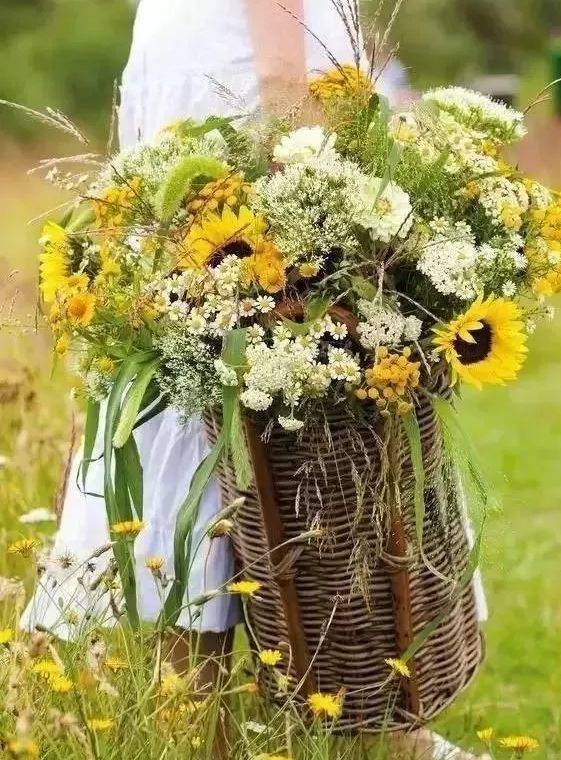 外出散步歸來,摘一束新鮮的花朵,