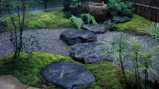 與沙礫結(jié)合的汀步,在形式上構(gòu)成的變化和對(duì)比雖然不盡相同,但在色彩上卻能很好地做到統(tǒng)一化。恍惚間,還有一種山水交融之感。使整個(gè)空間的搭配和諧自然。