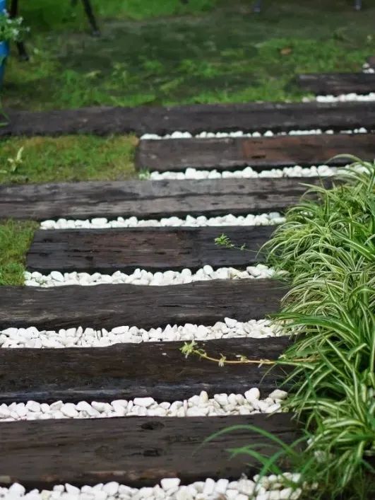 而不規(guī)則的汀步也頗有設(shè)計(jì)感,讓庭院的小道不再單調(diào)的同時(shí),也能保證草坪植被不被破壞,予人一種別樣的自然體驗(yàn)。