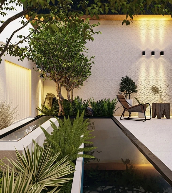 如果你的花園不大,小邦主也建議你安排一個水景,你可以買一個成品的室外魚缸,里面種上荷花,魚缸旁邊做一個小型的疊水系統(tǒng),那種感覺其實也是非常舒服的,晚上當燈光照亮了水景它也會成為院子的一個亮點,讓你感受到非常的愜意。