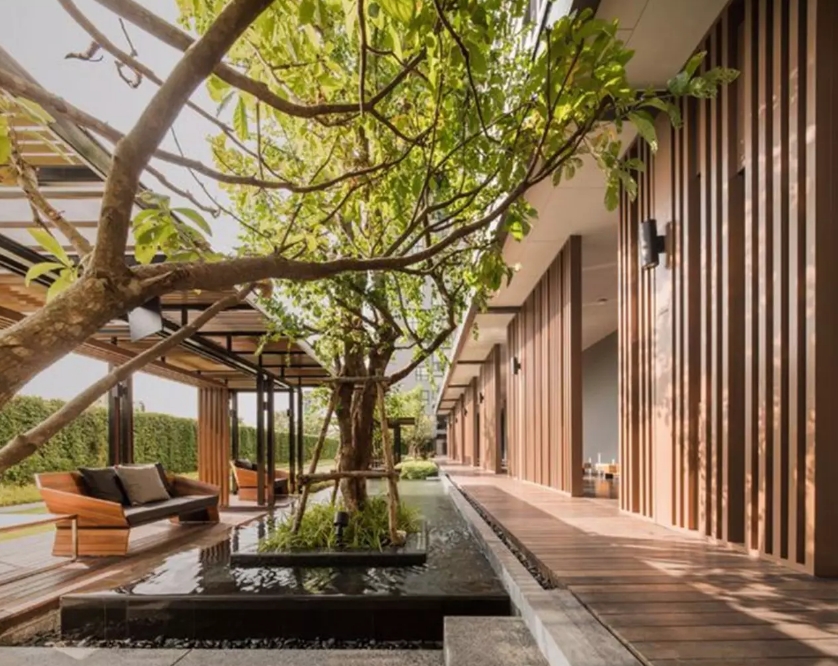 比如古樹、光滑的卵石及其它無生命材質(zhì)的材料,都可豐富庭院觸感。