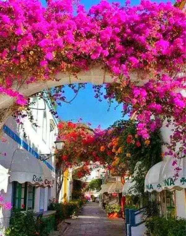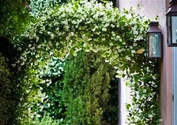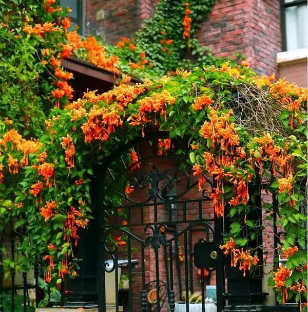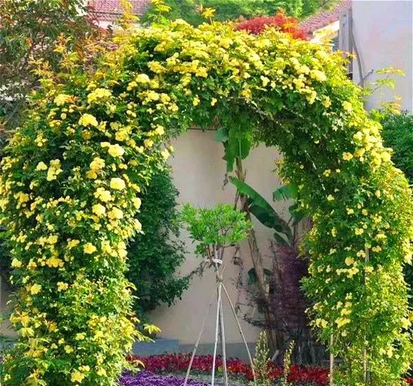 冬天比較溫暖的地方栽種炮仗花來做拱門,