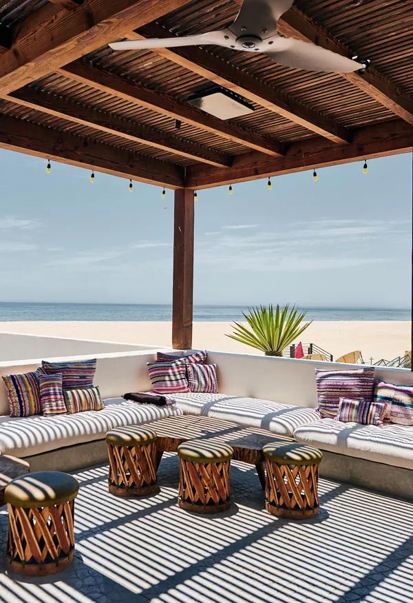 在這個(gè)摩洛哥風(fēng)格的庭院中,最主要的設(shè)計(jì)在于這個(gè)鵝卵石馬賽克臺(tái)階,其堆砌方式十分巧妙,好像制作一個(gè)千層蛋糕。