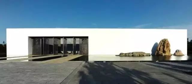 以白墻為畫布,利用原石的自然形態(tài)比作高山,一石即一山,一池有三山,水面倒映群山之美,宛如一幅中國(guó)山水畫卷。