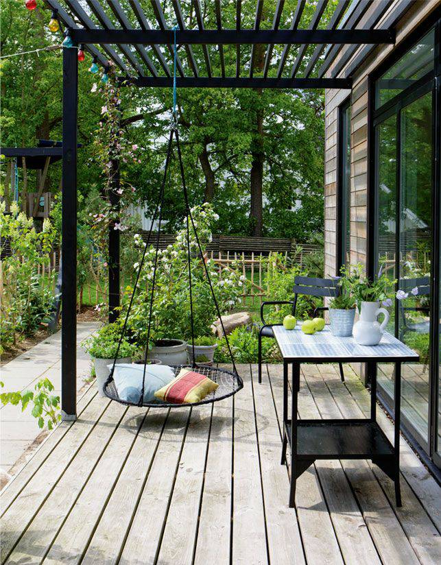 在庭院里搭建一個花架既能保證私密的空間,還可以防止高空拋物。