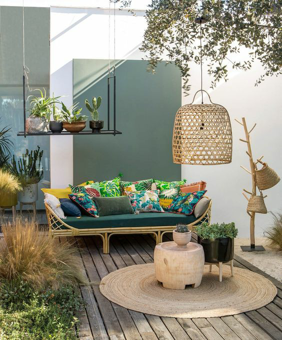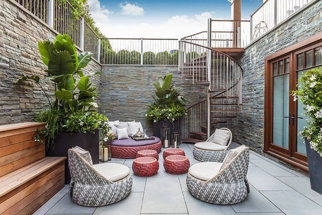 下沉式庭院,在梅雨季節(jié)很容易出現(xiàn)潮濕的感覺,所以地面鋪裝時(shí)盡量選擇天然的雨花石、戶外磚或防腐木,千萬不要使用軟木框架的家具,軟木會(huì)吸潮,容易導(dǎo)致框架受損,可選擇塑料、鋼鐵、石材框架作為代替。