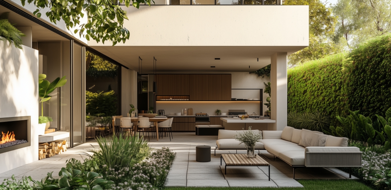 2. 布局:在設(shè)計(jì)室外空間時(shí),設(shè)計(jì)師建議像設(shè)計(jì)新房子的平面圖一樣深思熟慮。每個(gè)室外區(qū)域都應(yīng)該與房屋內(nèi)部有邏輯和功能連接,例如,將室外用餐區(qū)設(shè)置在廚房附近。