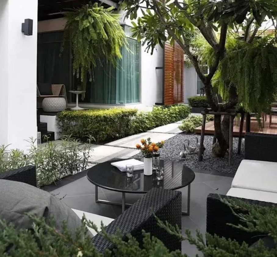 整個(gè)設(shè)計(jì)以草地或礫石為主,保留自然美感。使用木質(zhì)家具或鐵藝家具,增加自然的氛圍,同時(shí)提升舒適度??梢赃x擇戶外木的樹池卡座,橄欖樹、金合歡、棕櫚樹、鳥蕉等作為主要綠化,增添度假放松的美感?。青島庭院設(shè)計(jì)