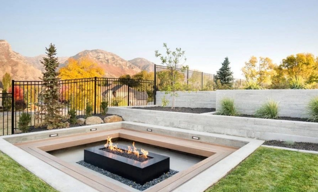 下沉式篝火區(qū):用耐火磚圍合圓形座椅,冬日圍爐煮茶,夏日投影看電影;