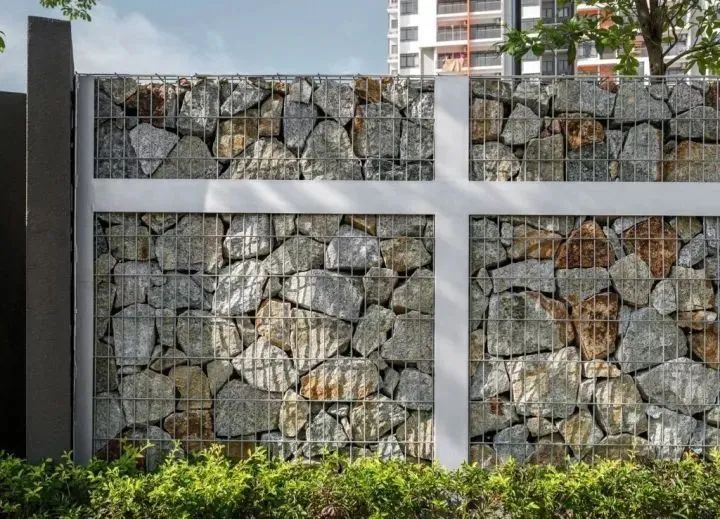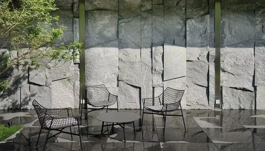 石材的圍墻厚實堅固,是給人們視覺精神上的安全感的屏障,同時石材的肌理各式各樣,給人不一樣的視覺感受。在圍墻設計中,石材是最為廣泛運用的裝飾材料。