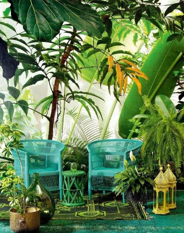 如果你居住在躍層的房子里,露天大平臺(tái),面積足夠大,餐桌、椅子、遮陽傘都可派上用場,還可以在四周點(diǎn)綴上高一些的熱帶綠色植物,或者放上一個(gè)簡易的烤爐和一張長條桌,這樣就可以開燒烤派對(duì)咯!