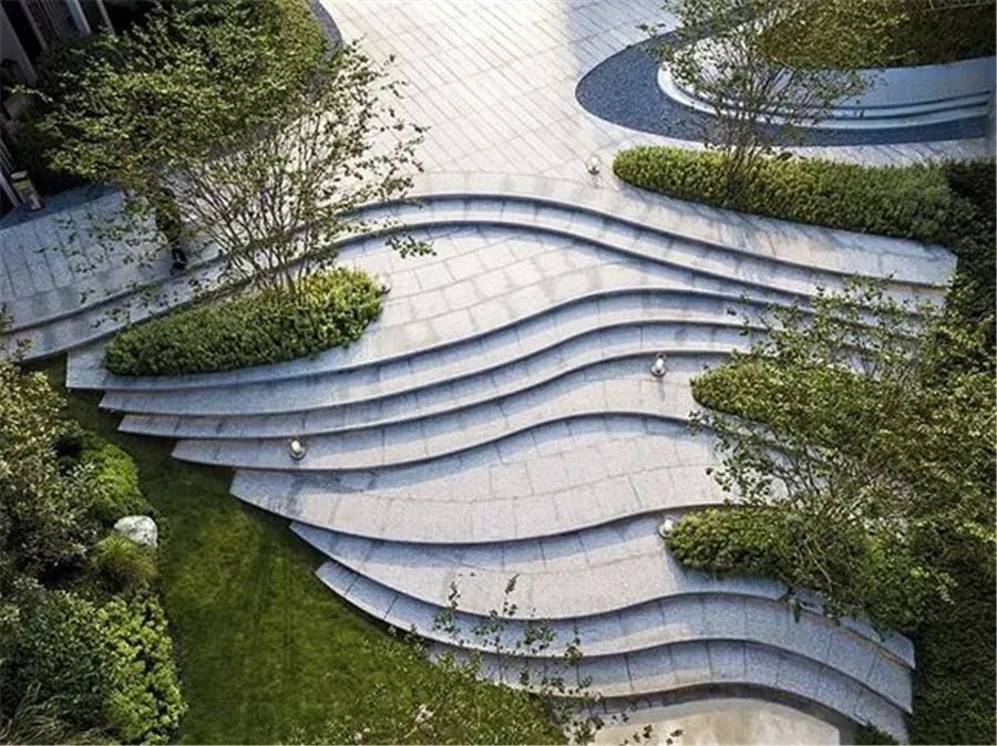 硬質(zhì)景觀(guān)與軟質(zhì)景觀(guān)在景觀(guān)設(shè)計(jì)中同樣重要,要把兩者的主要元素合理布置在有限的空間范圍內(nèi),這就必須重視點(diǎn)線(xiàn)面的有效合理搭配。