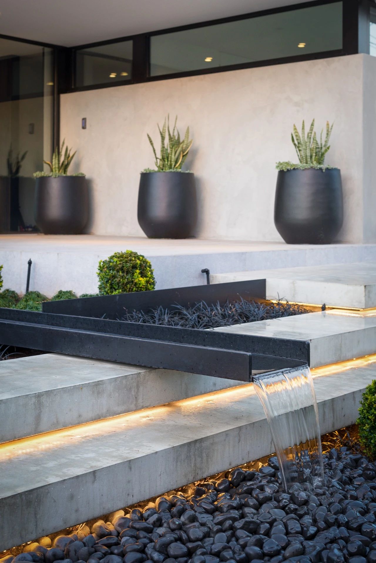 潺潺流水為入口空間增添了一份柔和和寧?kù)o