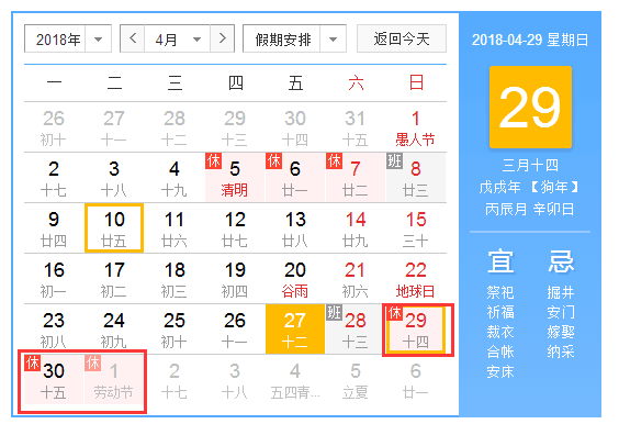 一、放假時(shí)間為4月29日至5月1日放假,4月28日(星期六)上班。