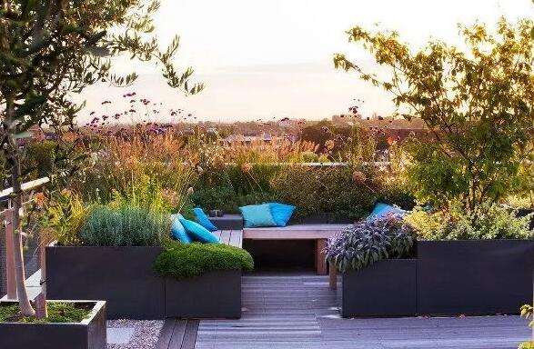 屋頂、露臺、陽臺等場所,介于室外和室內之間,又具有高層眺望的優(yōu)勢,因此被越來越多的人重視。而這些場所高出地面,不具地面的土壤結構,因此其景觀的設計需特殊考慮一些因素。
