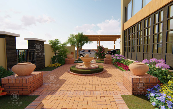 該庭院以歐式田園風(fēng)格為主,整體以紅色系為主,南院設(shè)置有中心水景,歐式廊架,水池景墻及歐式木質(zhì)拱形屏風(fēng),北院設(shè)置有燒烤臺(tái),水池景墻,及休憩木座凳,搭配精致的水缽及花缽等裝飾,整體風(fēng)格田園粗礦又不失細(xì)節(jié),設(shè)計(jì)手法上突出了自然田園、與大自然融為一體的設(shè)計(jì)理念。同時(shí)體現(xiàn)了主人熱愛(ài)生活,遠(yuǎn)離城市喧囂,享受幽靜的生活態(tài)度。