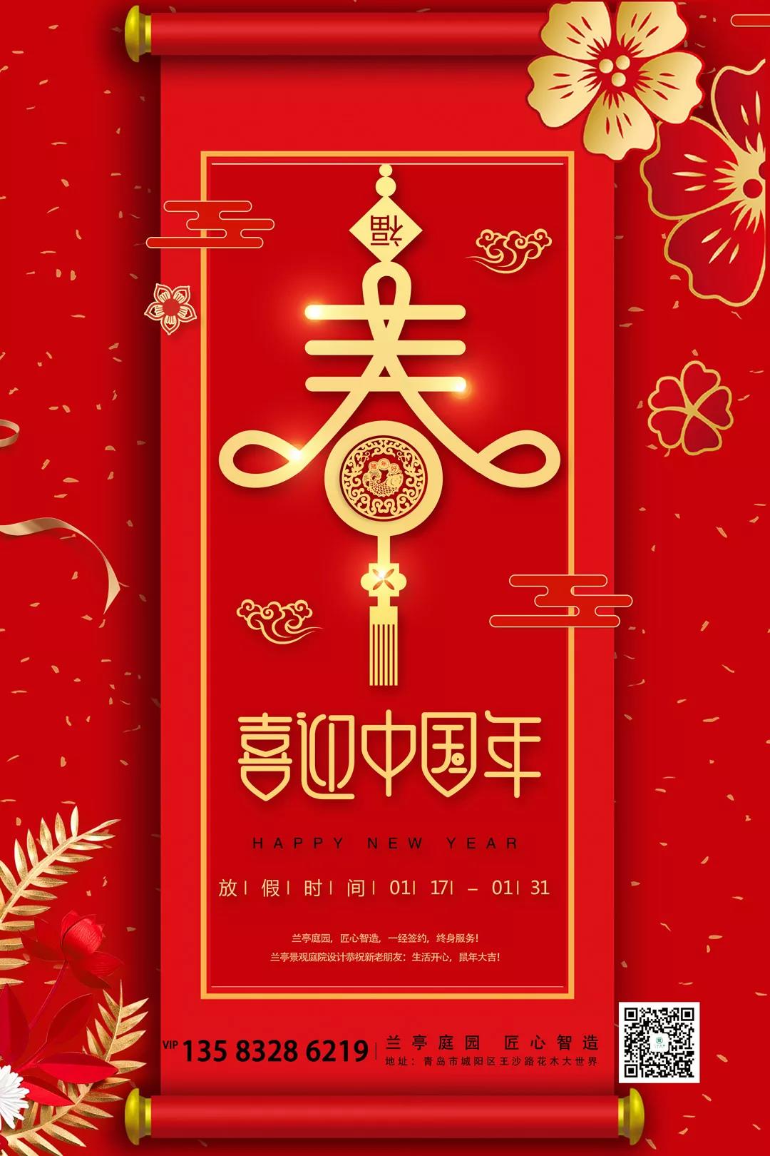 春節(jié)放假通知 來源:別墅庭院營造專家 點擊次數:4947 發(fā)布時間:2020/1/16 12:25:13 關注蘭亭景觀庭院設計 別墅庭院設計|屋頂花園設計|民宿景觀設計|錦鯉魚池建造 服務熱線:13605321758、13583286219 官方網站:www.aedene.com