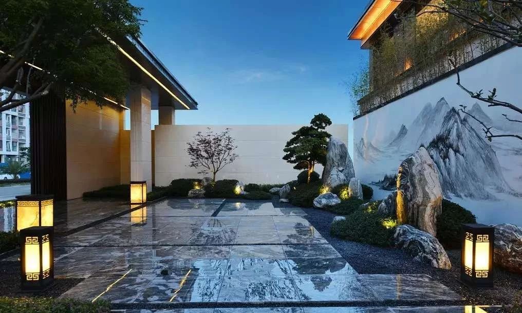 選取兩塊體態(tài)較大的石頭相對矗立,在意境上形成相互呼應(yīng)。而且石材的大小也不能完全一致,這樣既統(tǒng)一,又富有變化,營造自然的效果,否則就會顯得生硬刻意。除了兩塊主要的對景石,周邊還輔以少量石塊做點(diǎn)綴,在配以常青綠植和山水背景墻,景色之間呈現(xiàn)虛與實(shí)的變化,構(gòu)成一幅充滿中國風(fēng)情的水墨畫。青島花園設(shè)計公司——蘭亭景觀為您介紹。
