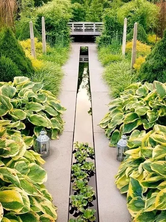 在植物的葉型選擇上,可以把具有硬實(shí)、直立屬性葉片的植物與體形小、質(zhì)地柔軟、葉型較圓葉片的植物(如歐亞甘草、馬櫻丹屬植物)混合種植在一起,形成在葉型和外形上的巨大反差,給人較強(qiáng)的視覺效果。青島花園設(shè)計(jì)公司——蘭亭景觀為您介紹。